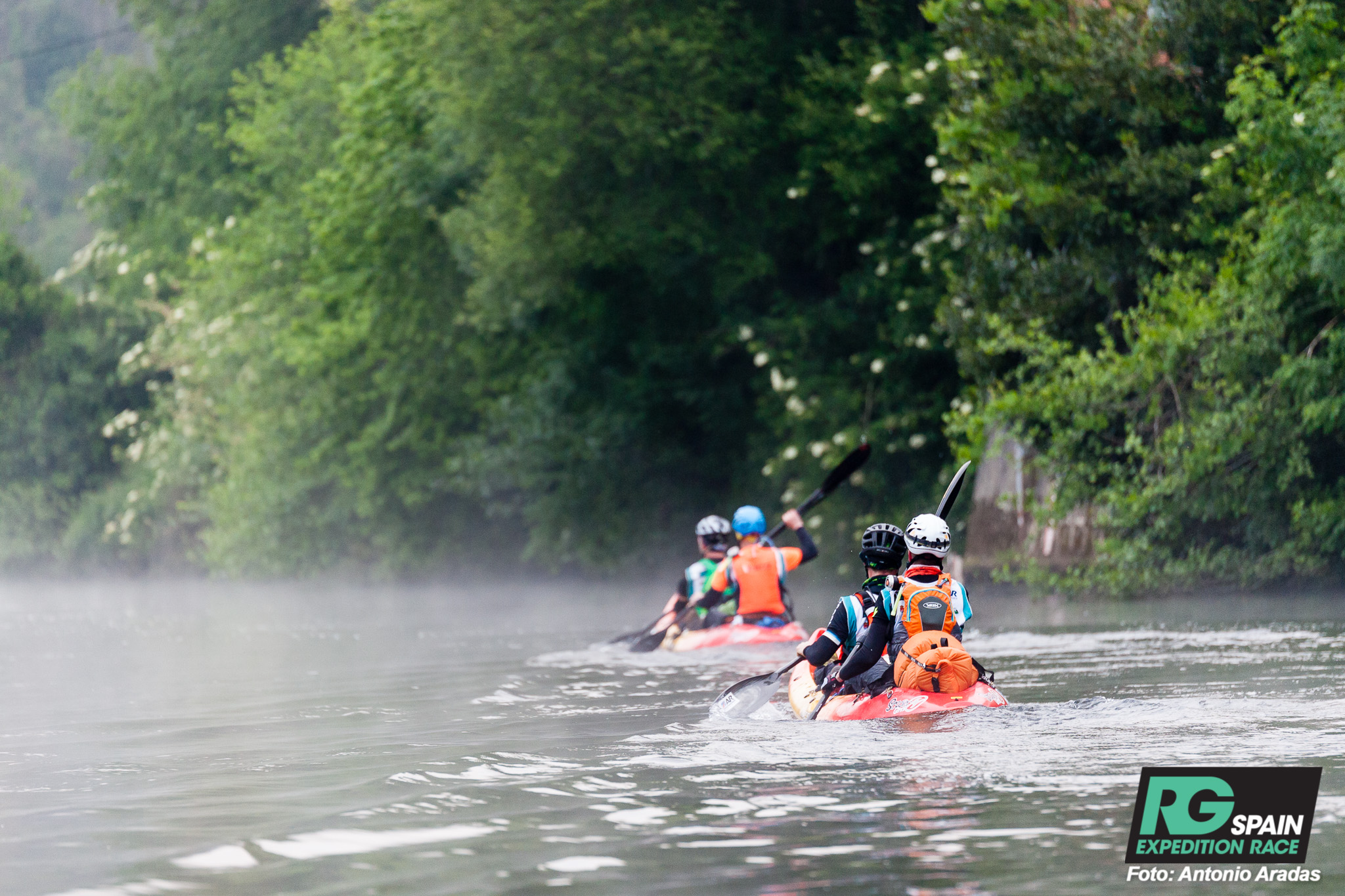 Na de pizza en een heerlijke 2,5 uur slaap, begonnen we 50 minuten voor de cut-off met lopen naar de kajak instap plek 12km verderop. Al snel nadat we in de kajak gestapt waren kwamen we erachter dat de Rio del Eo toch wel wat meer stroomversnellingen in petto had dan de sneller stromende riviertjes in Nederland.