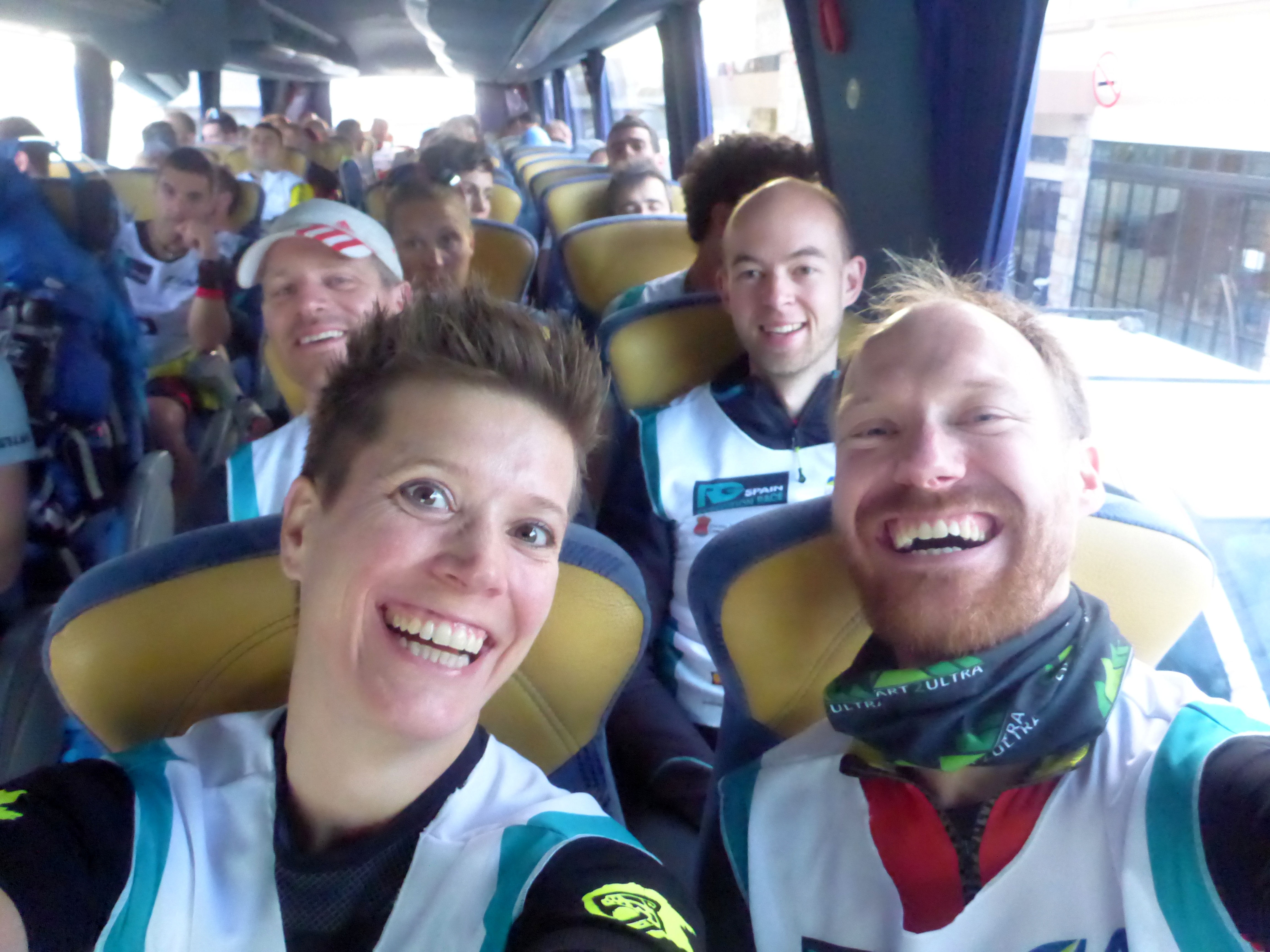 Aangekomen in Spanje hadden niet alle mountainbikes het gooi en smijt werk van de Jerommekes van het vliegveld overleefd. En zo stond de dag voor de race in het teken van de zoektocht naar een fietsenmaker. De eerste en grootste fietsenwinkel was precies vanaf die dag voorgoed gesloten en de tweede fietsenwinkel volgens google maps was geen fietsenwinkel meer. Onze laatste optie was een mini mountainbike verhuur, maar wie het kleine niet eert… Met gebaren probeerden we duidelijk te maken wat er aan de hand was, en deze man bleek een uitermate bedreven fietsenmaker. Kabel naar het derailleur werd vervangen en het derailleurpad werd bij gebogen en opnieuw afgesteld. Er kon weer geschakeld worden, toch wel fijn voor 300km met 10.000hm op de mountainbike! Met werkende mountainbikes konden we in alle rust de overige voorbereidingen en verplichtingen van de organisatie doorlopen. Nog een laatste goede nachtrust en om 08.00u stapten we in de bus naar de startlocatie.