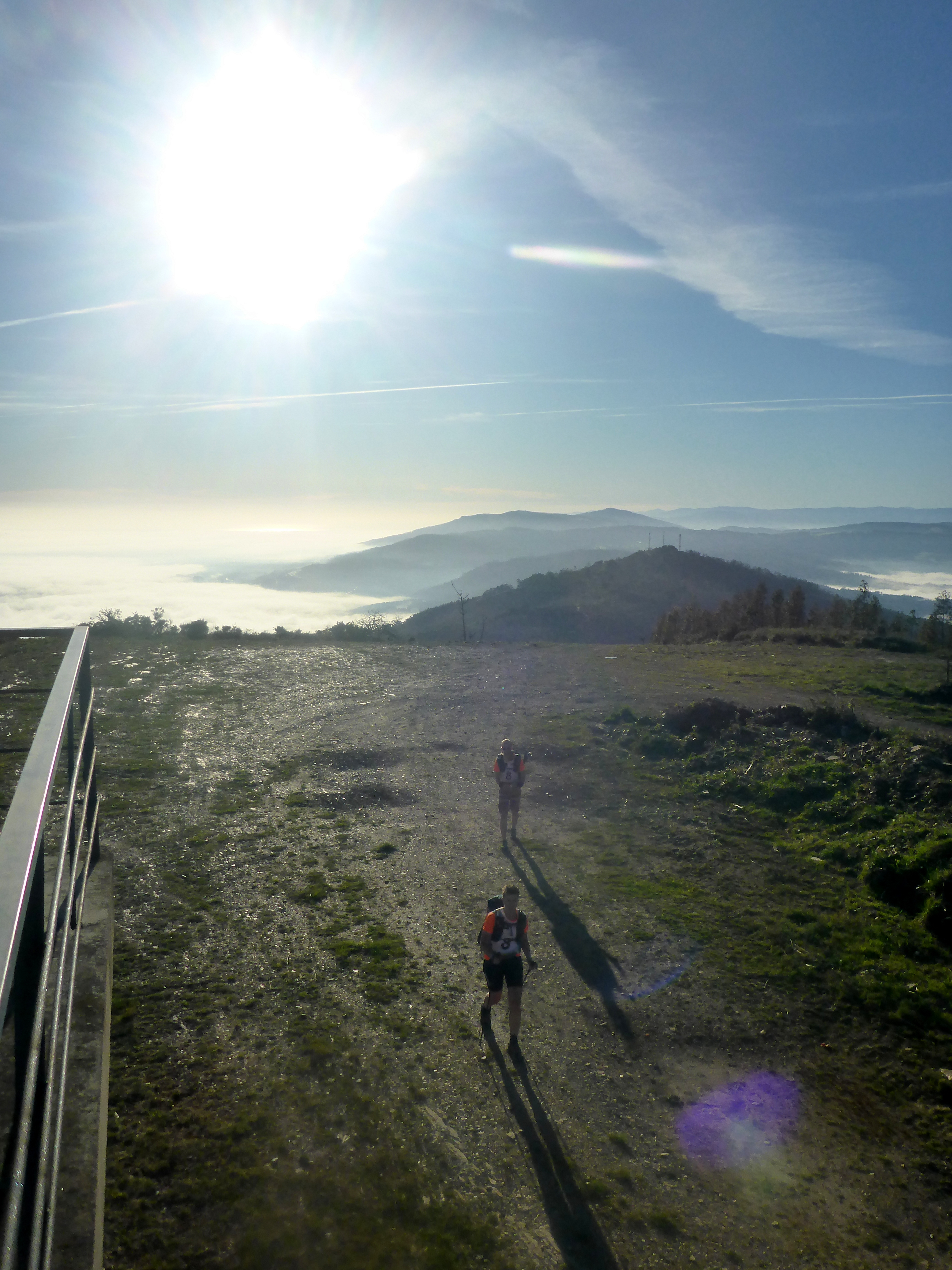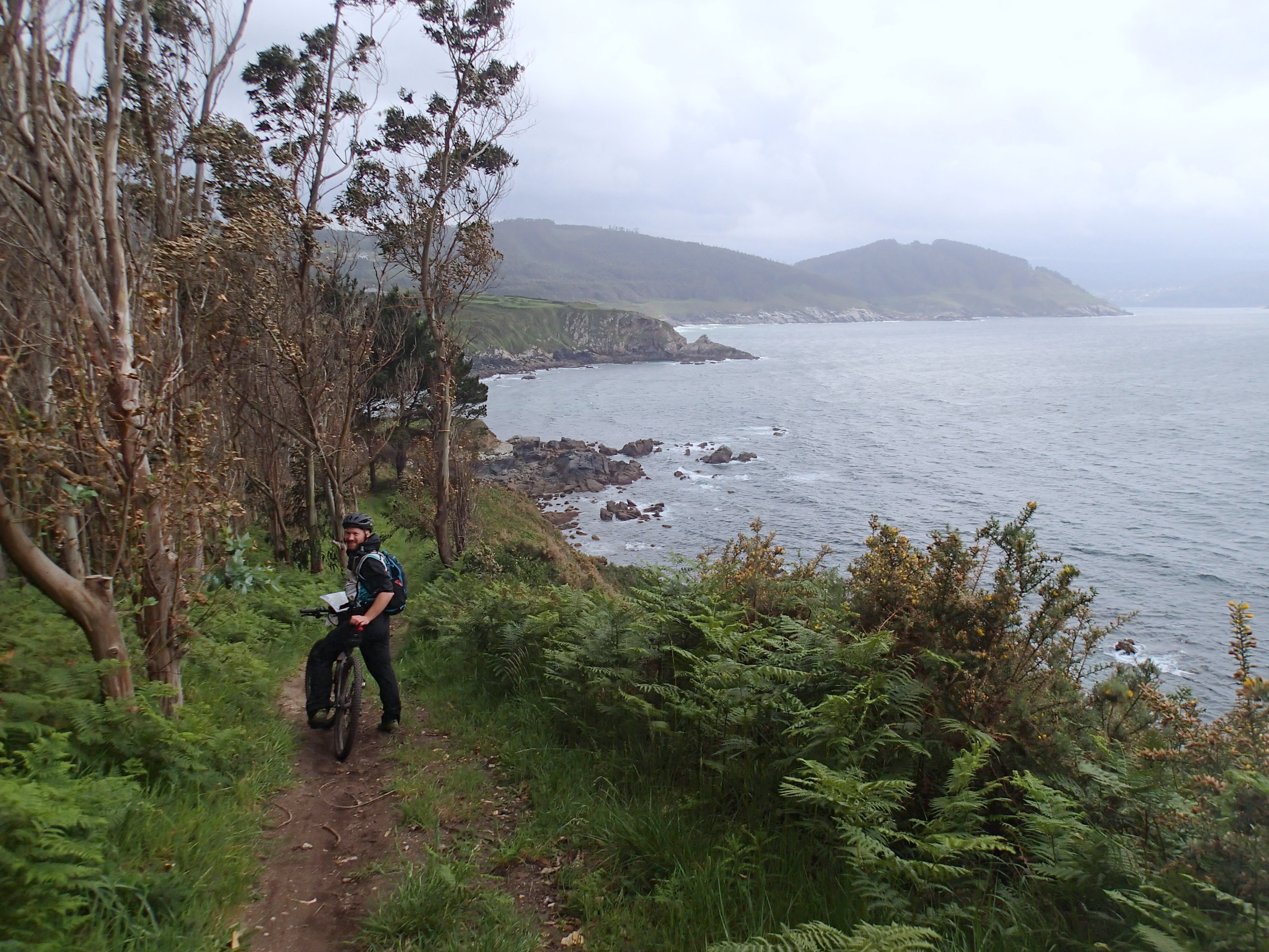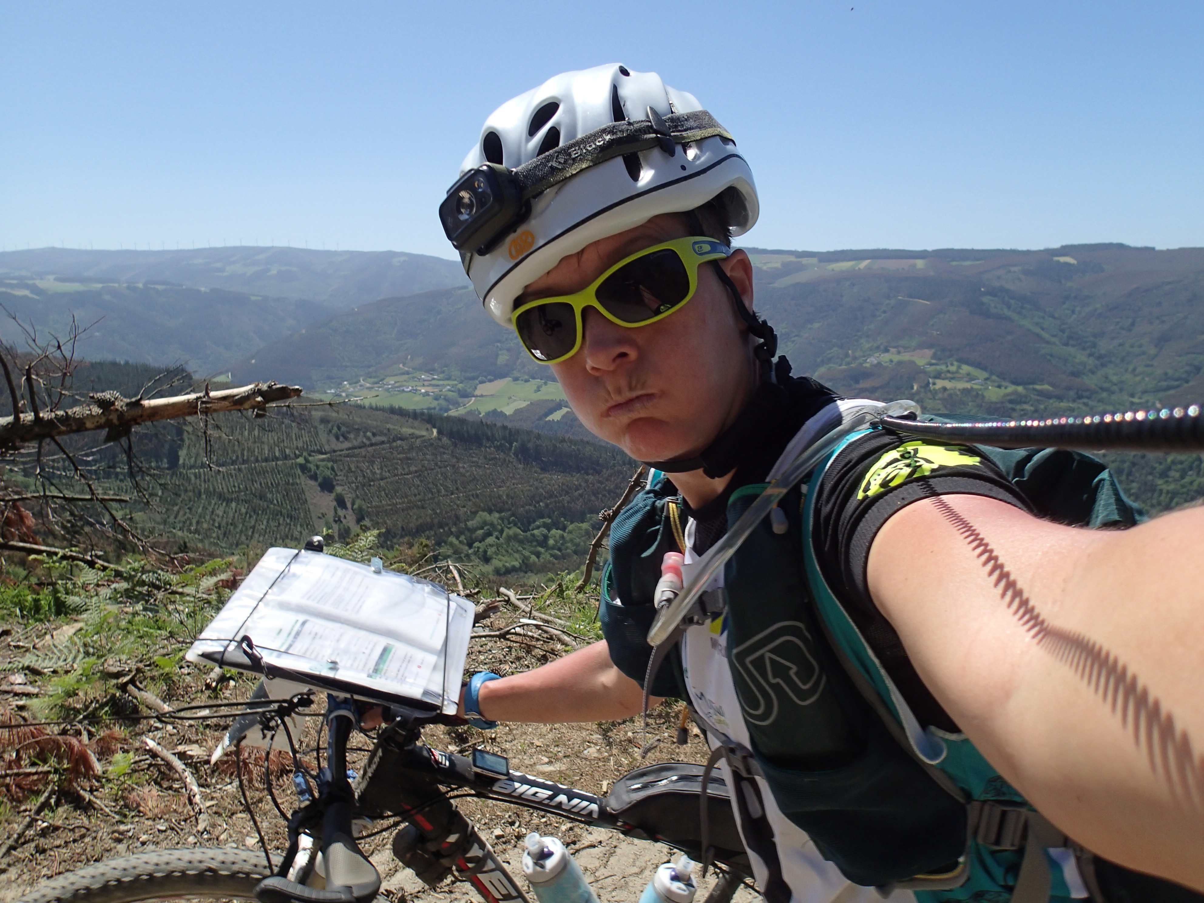 De paden omhoog werden wel wat steiler en langer dus we moesten steeds langere stukken lopen met de fiets. Tot het op een gegeven moment wel erg warm werd. We ontdekten toen dat het weer aan de kust en op de bergtoppen landinwaarts een wereld van verschil was. We hadden ons voorbereid op zo’n 20 graden met gezellig zonnetje, het weerbericht van de kustplaats en race locatie Viveiro. Landinwaarts bleek de temperatuur echter gemakkelijk 10 graden hoger en bleek de zon goed te branden, oei! Volgende keer gaan we ook het insmeren met zonnebrand maar op het schema er bij zetten 😉